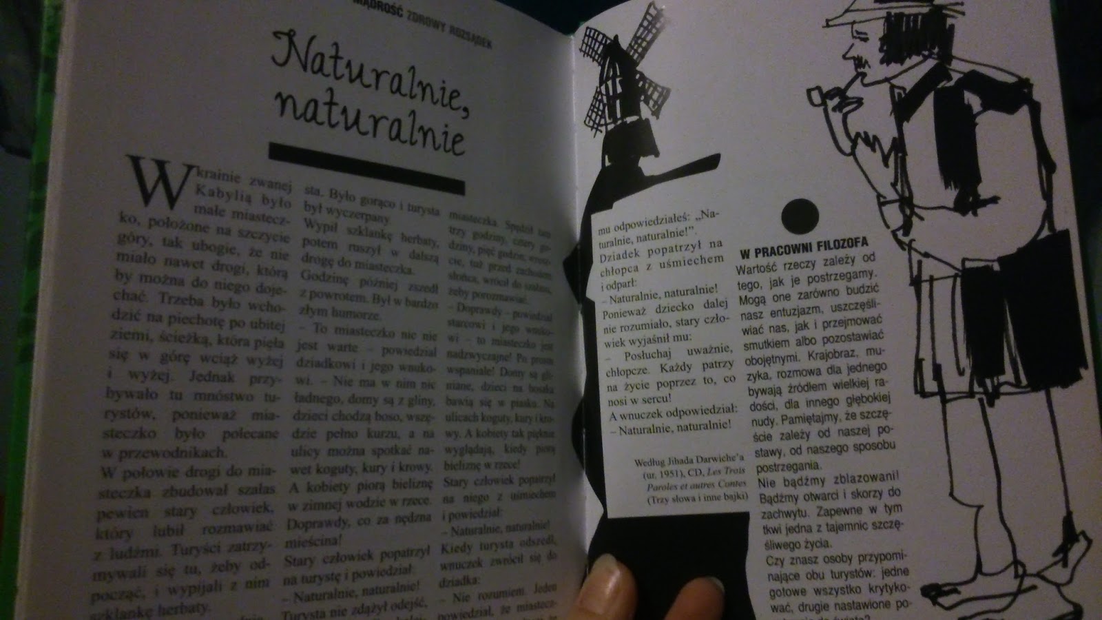 Podczas obrazkologii oglądaliśmy film „Historia rzeczy” Story of stuff. Rozmawialiśmy o konsumcjonizmie i materializmie, czytaliśmy książki filozoficzne na ten temat – książka na zdjęciu.
