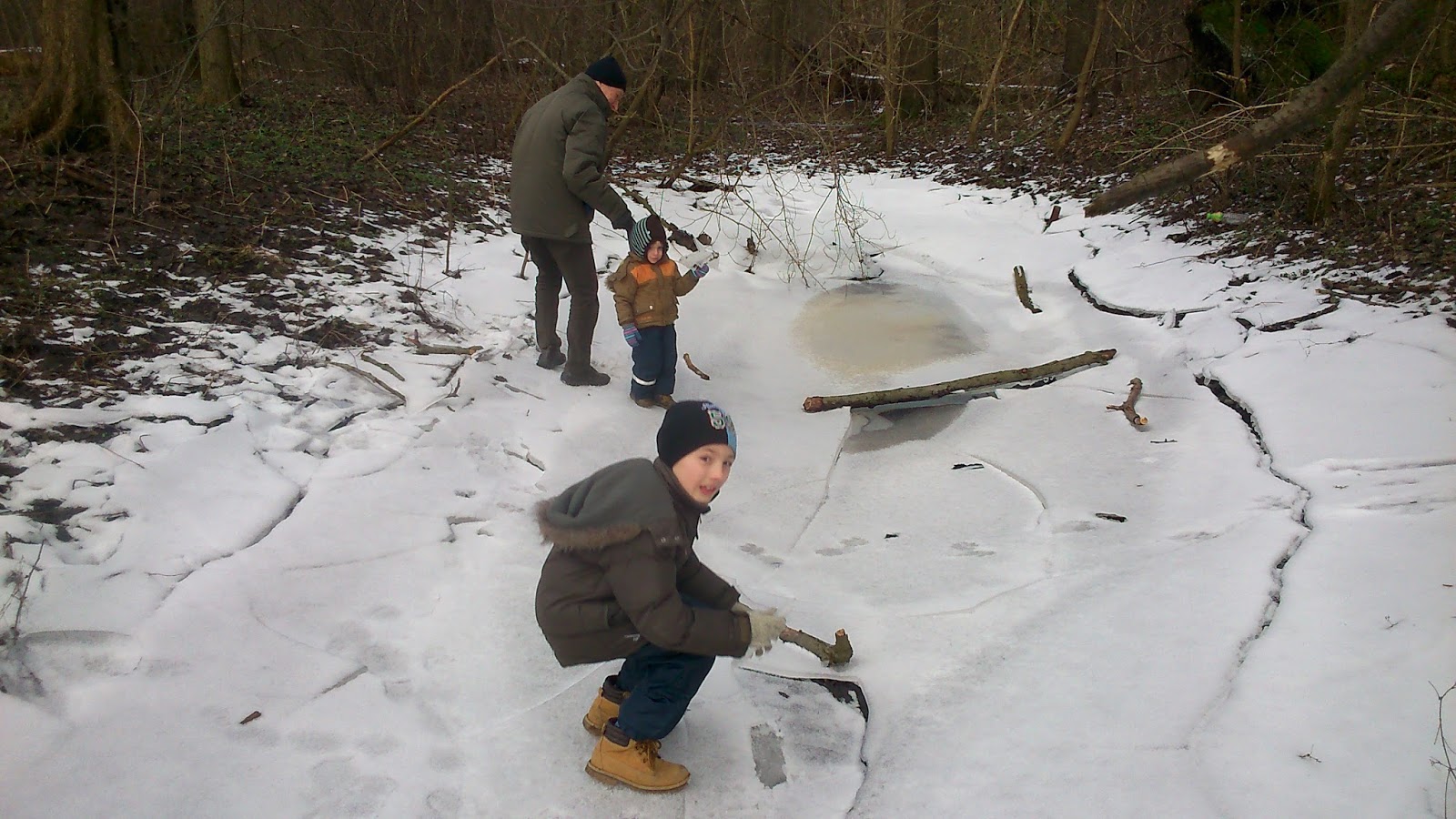 Jest jeszcze trochę śniegu, jest jeszcze trochę lodu do połamania. A drzewa są zawsze, i niewiele na nich zieleni, można bezkarnie wejść wszędzie.
